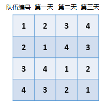 例如n=4,则可以设计如下比赛日程