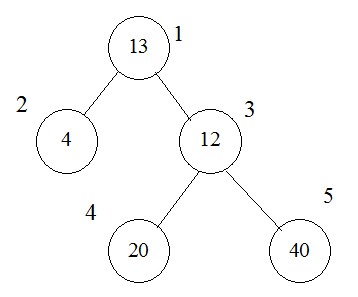 设有一棵二叉树(如下图),其中圈中的数字表示结点中居民的人口,圈边上数字表示结点编号。